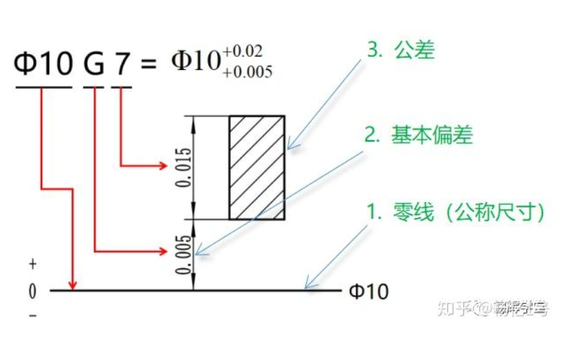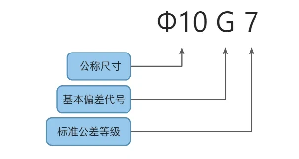 公差带代号是基本偏差和标准公差等级的组合,它包含了公差大小和相对于公称尺寸的公差带位置的信息,它由公称尺寸、基本偏差代号和标准公差等级三部分组成: