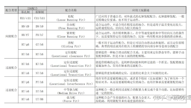 对于一个给定的配合类型,可通过查表获得其属于哪种类型的配合