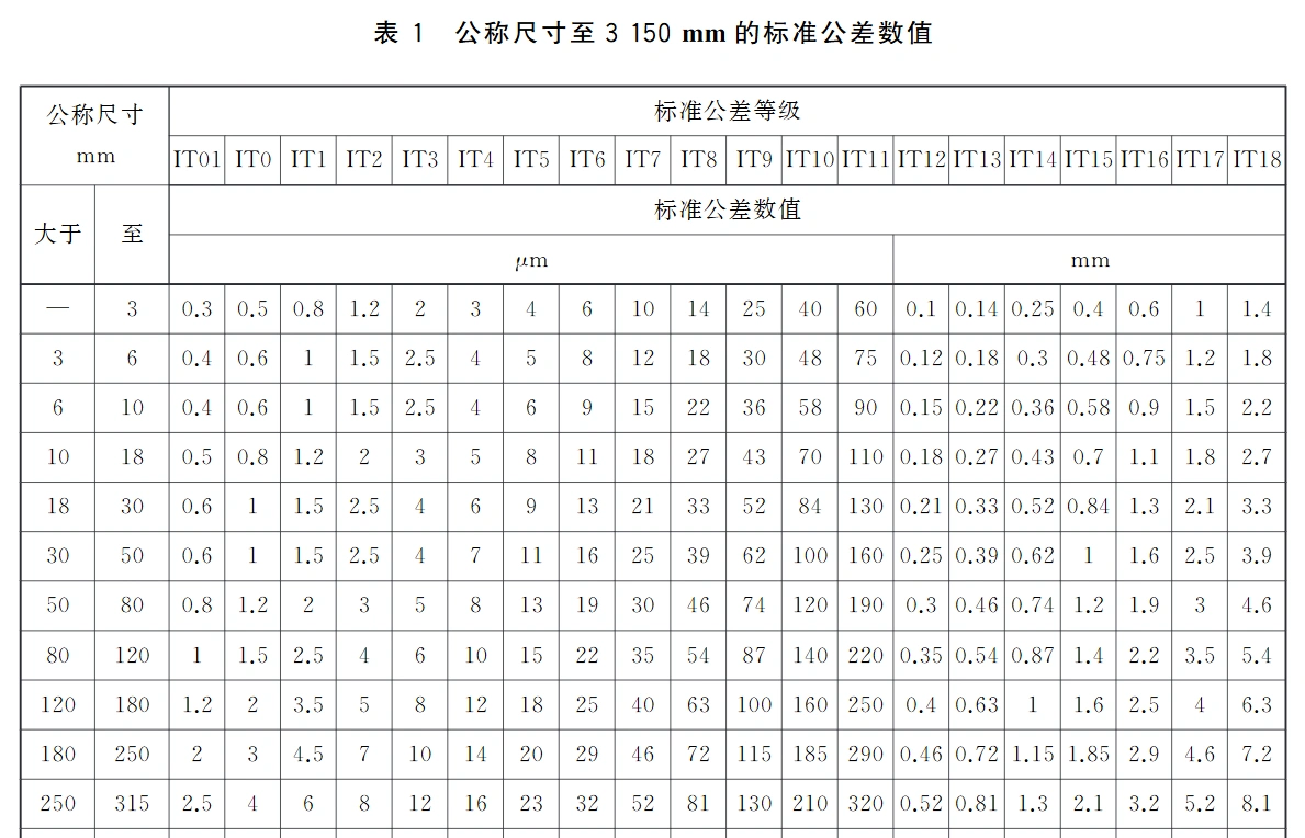 标准公差等级表示了公差的大小,从IT01 ~ IT18, 一共 20 个等级。公差等级越小,公差要求越高,表示精度越高,加工难度也就越大。
