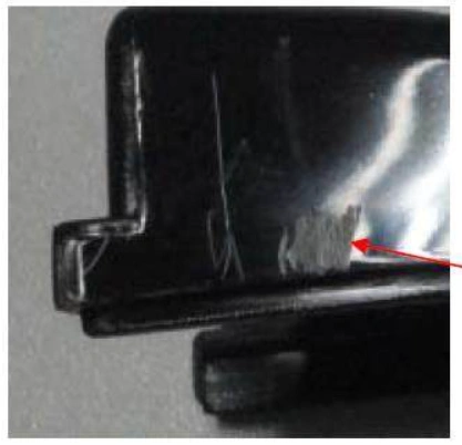 胶件在脱模过程中摩擦模具,沿出模方向在胶件外观上留下痕迹。